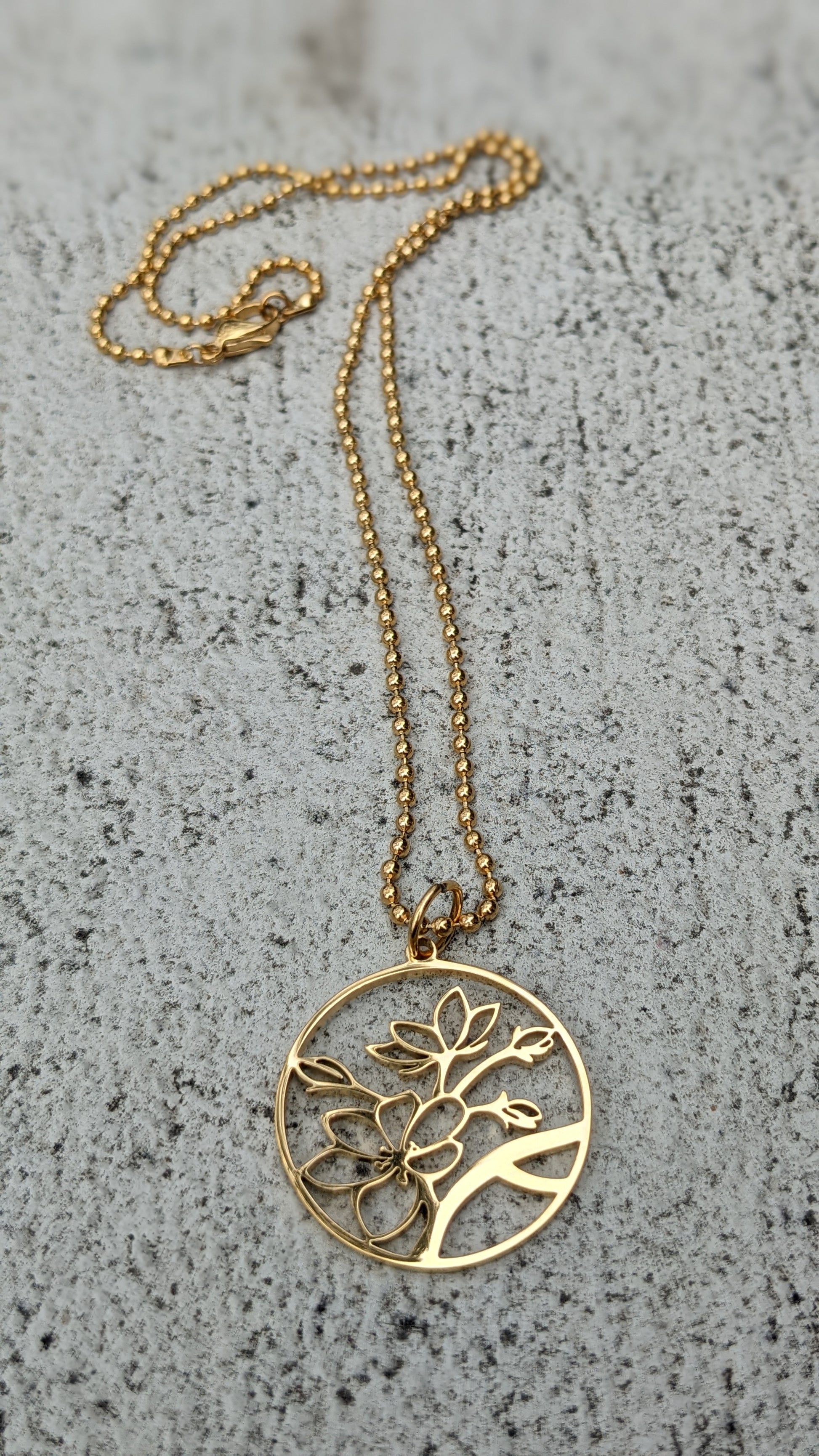 Elevate your jewellery collection with our stunning Stainless Steel Blossom Charm Necklace, the perfect combination of elegance and durability. This necklace features a beautifully crafted 27mm blossom charm with 18ct gold plating that adds a touch of sophistication to any outfit.