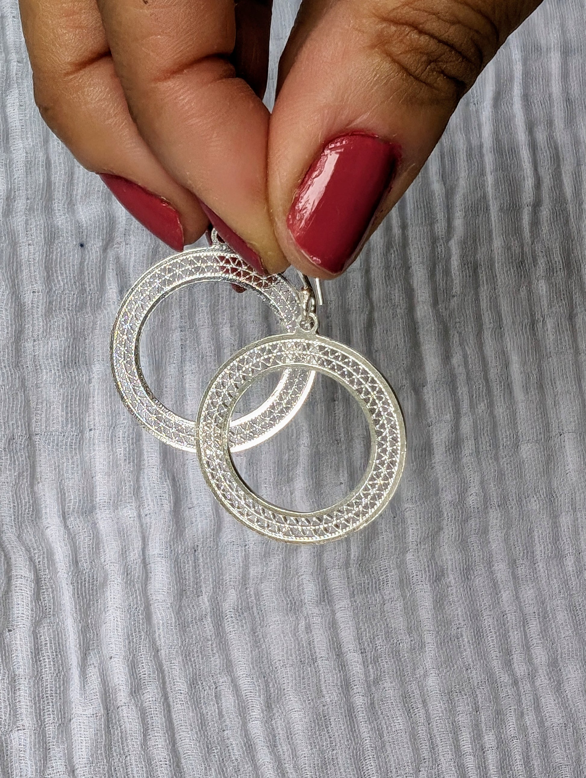 Our Circles earrings are a fusion of minimalist aesthetics and desi charm. Crafted with fine sterling silver, crafted into a contemporary interpretation of traditional desi jewellery.