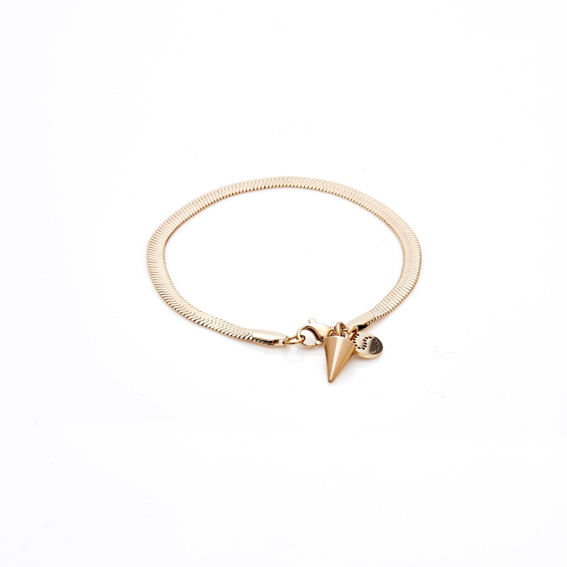 By Silk & Steel, this Silky herringbone bracelet feels so beautiful to wear. We love how it drapes across the wrist and weighted by Silk & Steel's signature spike and S charms.